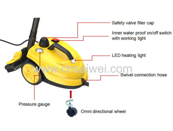 | Hose: | 1.45m from steamer body to gun | Warm up time: | 8 min |